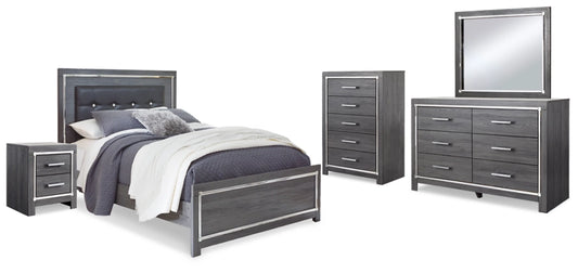 Lodanna Queen Panel Bed with Mirrored Dresser, Chest and Nightstand