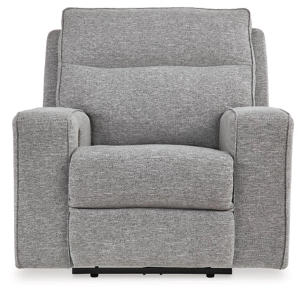 If style is the question, then this power recliner is the answer. Its clean-lined profile is beautifully contemporary. High-performance fabric, machine-washable pillows and plump cushioning make it so easy to comfortably kick up your heels The adjustable Easy View™ headrest allows a primo view of the TV, and the extended ottoman provides extra room to really stretch out. Simply sit back, chill out and recline away—this recliner is designed to be your favorite seat in the house.