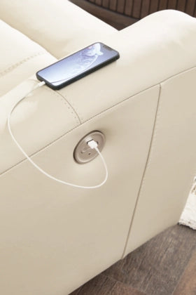 Focus on function. This practical power reclining sofa balances contemporary character and irresistible comfort. Its affordable, expertly matched leather and faux leather upholstery keeps your style up to speed without breaking the bank. Reclining at the touch of a button, the sofa plays well in relaxed, luxe seating areas made for quality time.
