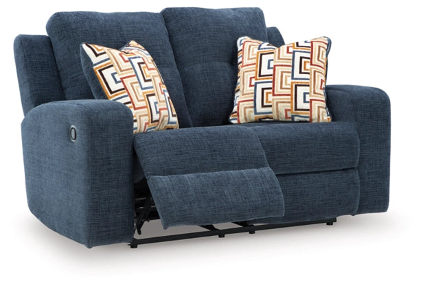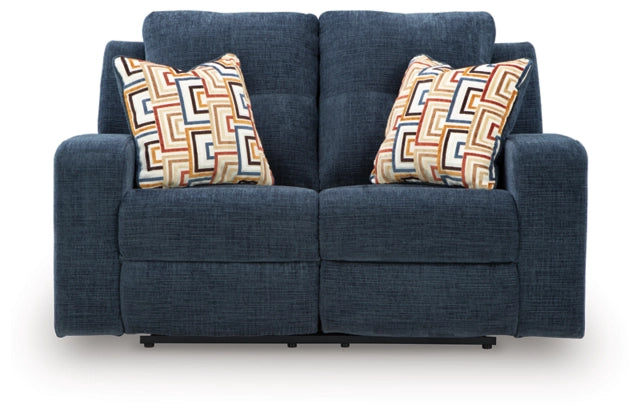 This reclining loveseat invites you to a luxuriously soft lounging experience. The chic hue fits right in with contemporary color palettes. A tufted back keeps the look right on trend. Balancing style and function, its pull tab reclining effortlessly takes you to relaxation mode.