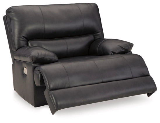 Striking form, meet contemporary function. This power recliner combines your ideal comfort features, like one-touch reclining and adjustable headrests, into one sophisticated package. With a design defined by the luxe look of black leather, this recliner pairs beautifully with your uncompromisingly posh aesthetic.