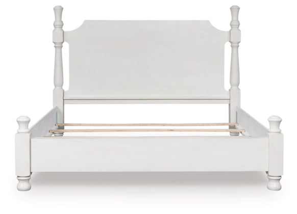Taking a laid-back approach to casual traditional design, this artfully crafted queen poster bed features a handsomely hefty yet fashionably proportioned silhouette. Its rubbed antiqued white finish exudes a comfy, timeless appeal that's sure to carry you away to a dreamy time and place. This easy-to-love look makes just the right statement.
